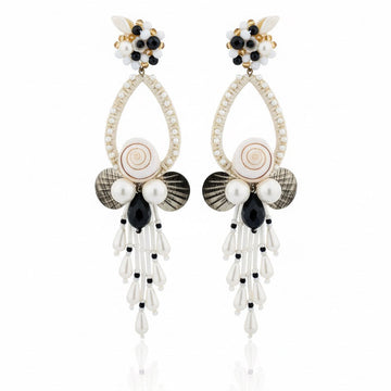 Aretes artesanales, tejidos y bordados a mano con cristales varios, lentejuelas, caracoles, perlas, canutillos y mostacillas.