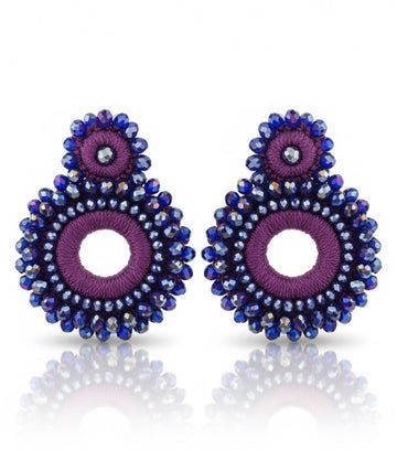 Aretes artesanales, tejidos y bordados a mano con cristales.