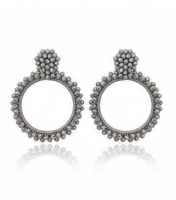 Aretes artesanales, tejidos y bordados a mano con cristales.