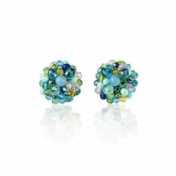 Aretes artesanales, tejidos y bordados a mano con cristales y piedras mixtas