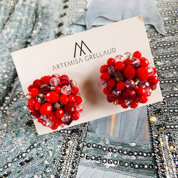 Aretes artesanales, tejidos y bordados a mano con cristales y piedras mixtas