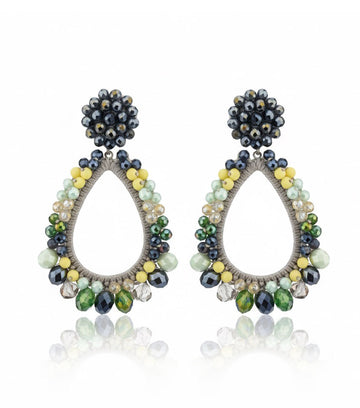 Aretes artesanales, tejidos y bordados a mano con cristales y piedras mixtas