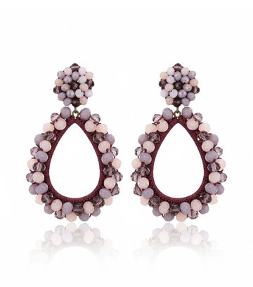 Aretes artesanales, tejidos y bordados a mano con cristales, en forma de lágrima.