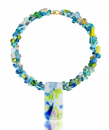 Collar artesanal, tejido y bordado a mano con cristales y piedras